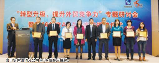 在中國信保近日舉辦的“轉(zhuǎn)型升級(jí),提升外貿(mào)競爭力”專題研討會(huì)暨AAA級(jí)客戶授牌儀式上,廈門國貿(mào)被中國信保授予AAA級(jí)客戶。據(jù)悉,中國信保將對(duì)獲授AAA級(jí)客戶的企業(yè)從承保、理賠、增值服務(wù)等方面制定差異化政策,大力支持這些重點(diǎn)客戶使用個(gè)性化承保方案開拓海外市場。