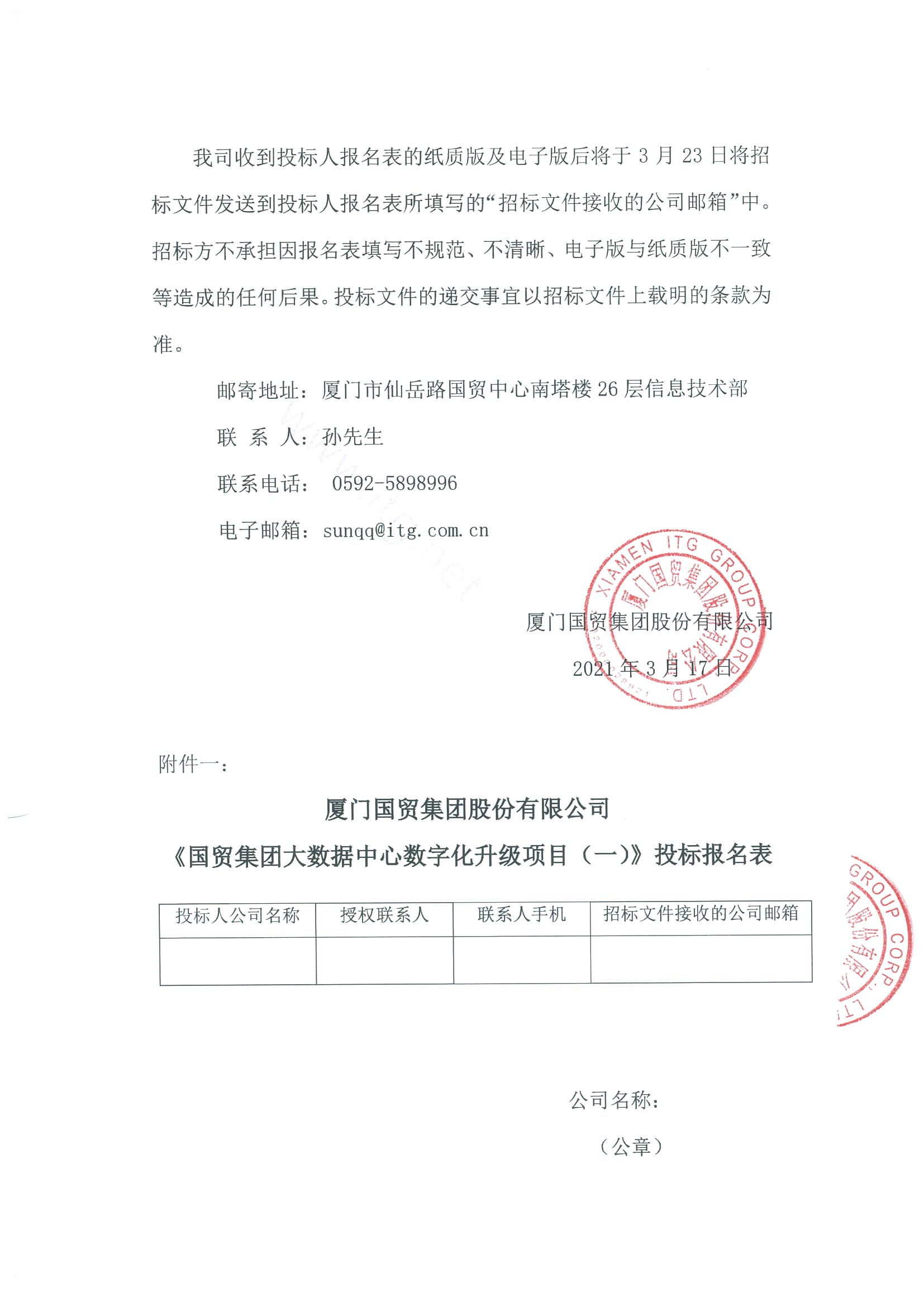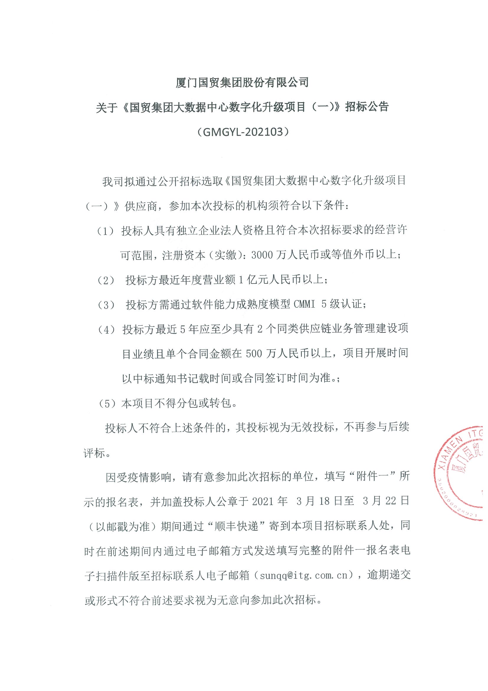 關(guān)于《國貿(mào)集團大數(shù)據(jù)中心數(shù)字化升級項目(一) 》招標公告