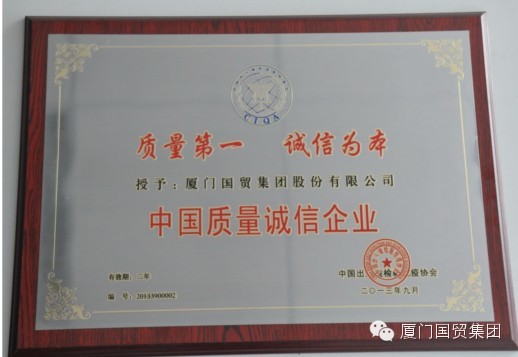 近日,中國出入境檢驗檢疫協(xié)會公布2013中國質(zhì)量誠信企業(yè)名單,廈門國貿(mào)第二次蟬聯(lián)此項稱號。