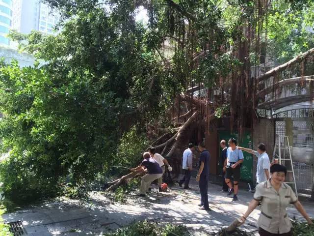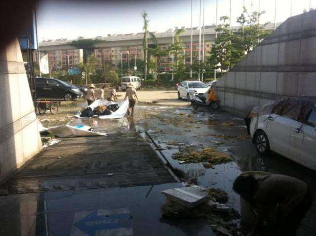 在物業(yè)公司員工的幫助下,幾個(gè)被風(fēng)吹破的玻璃很快被用木板臨時(shí)加固。在他們和地產(chǎn)廈門公司全力協(xié)助以及社區(qū)志愿者配合下,被倒坍大樹阻擋的進(jìn)出國(guó)貿(mào)大廈的 唯一通道于17日上午順利打通,所有樹枝分三部車也在當(dāng)天晚上8時(shí)許的瓢潑大雨中運(yùn)走,確保了18日上班車輛的正常通行。
