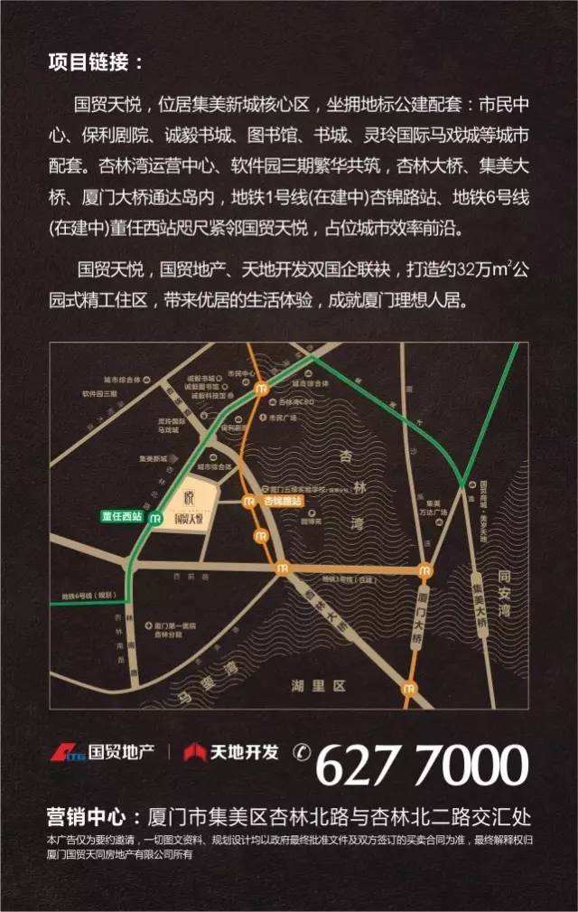 國貿(mào)天悅項(xiàng)目毗鄰市民中心&市民廣場、保利劇院、誠毅科技探索中心、誠毅圖書館、誠毅書城、集美新城商務(wù)中心,豐盛生活隨心所享。