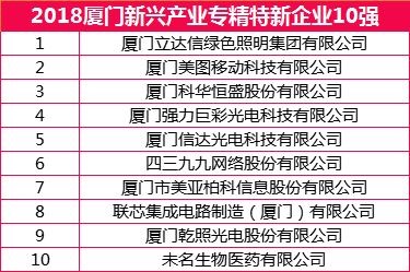 在同時(shí)發(fā)布的“2018廈門(mén)新興產(chǎn)業(yè)專(zhuān)精特新企業(yè)10強(qiáng)” 排行榜中,信達(dá)股份公司旗下廈門(mén)信達(dá)光電科技有限公司上榜。