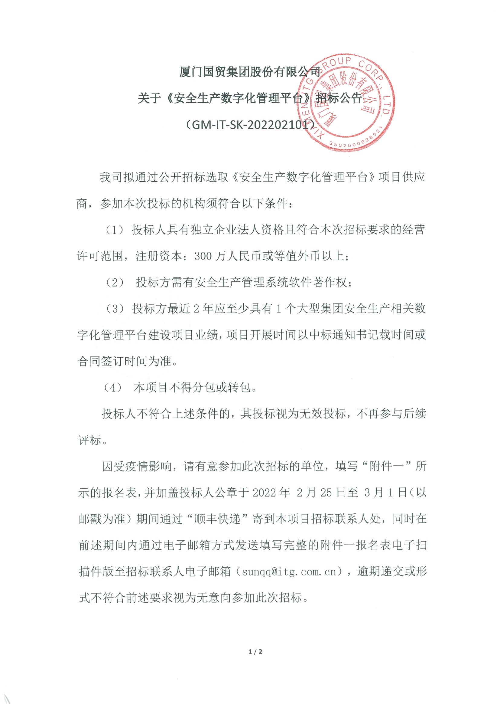 國貿(mào)股份《安全生產(chǎn)數(shù)字化管理平臺(tái)》項(xiàng)目采購招標(biāo)公告