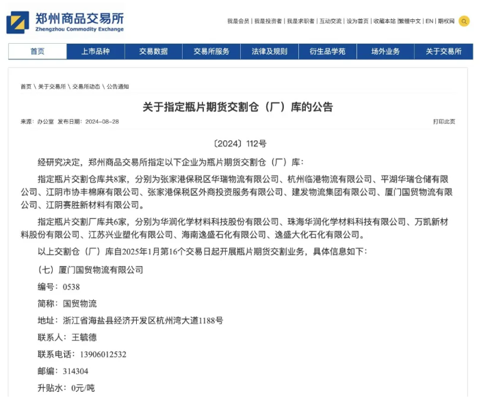 國貿(mào)股份獲首批鄭商所瓶片交割倉庫資質(zhì)