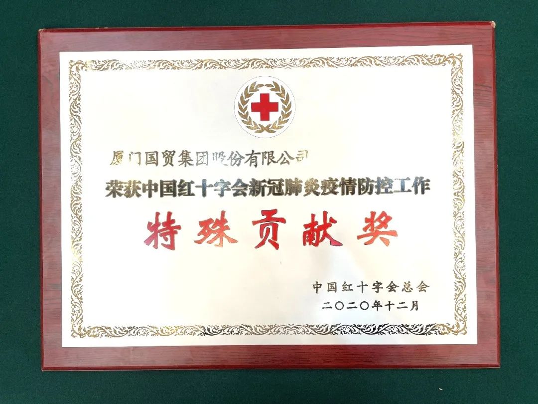 近日,國(guó)貿(mào)股份榮獲中國(guó)紅十字會(huì)總會(huì)頒發(fā)的廈門市唯一一項(xiàng)中國(guó)紅十字會(huì)新冠肺炎疫情防控工作“特殊貢獻(xiàn)獎(jiǎng)”。