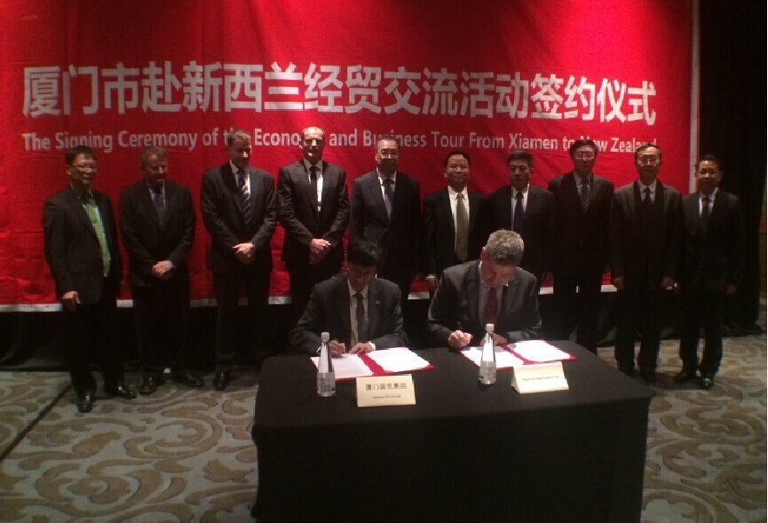 “廈門市赴新西蘭經(jīng)貿(mào)交流活動”簽約儀式昨日在奧克蘭舉行。在市長劉可清的見證下,國貿(mào)集團董事長何福龍與新西蘭合作伙伴現(xiàn)場進(jìn)行簽約。
