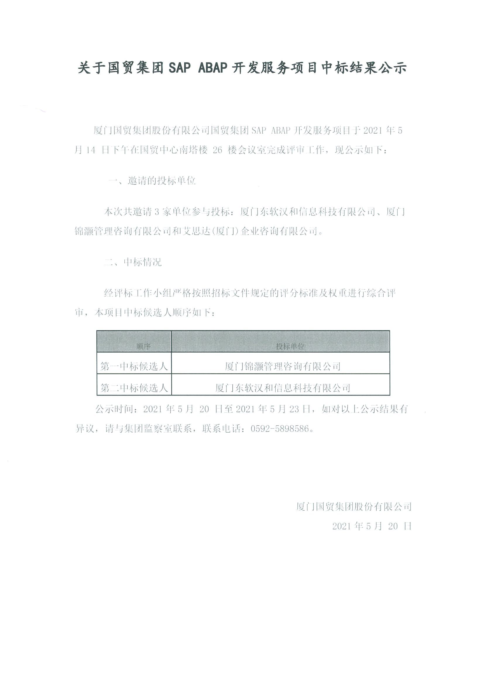 關(guān)于國(guó)貿(mào)集團(tuán)SAP ABAP開發(fā)服務(wù)項(xiàng)目中標(biāo)結(jié)果公示