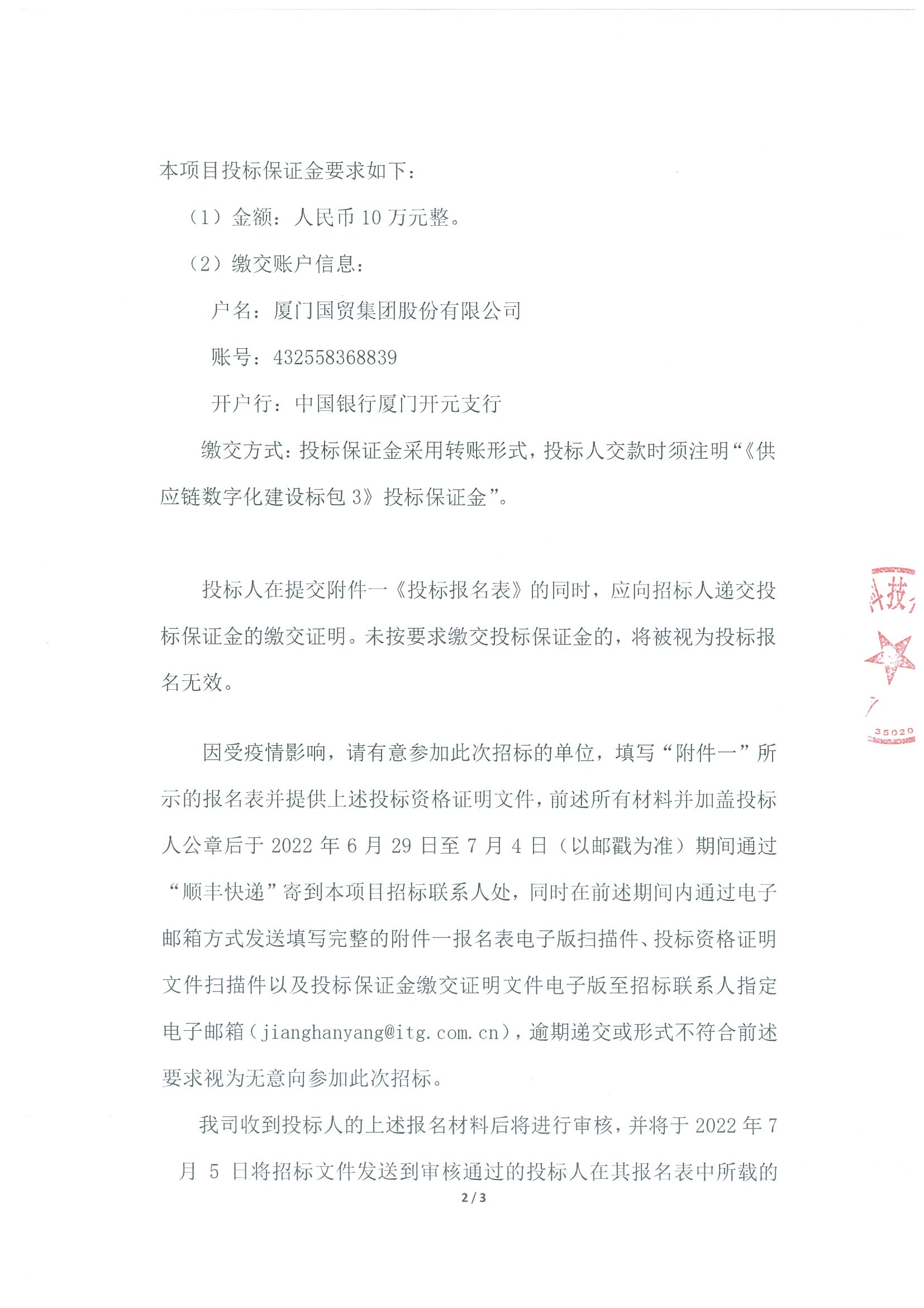 廈門(mén)國(guó)貿(mào)數(shù)字科技有限公司關(guān)于《供應(yīng)鏈數(shù)字化建設(shè)標(biāo)包3》的招標(biāo)公告